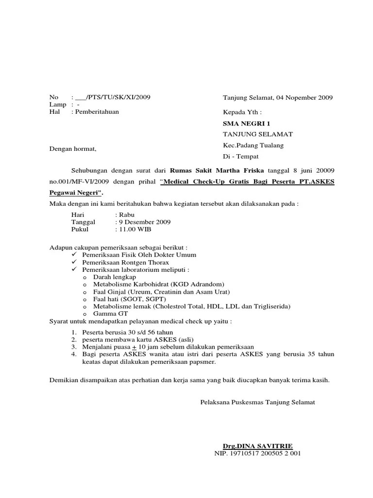 Contoh surat pengantar medical cek up . 373886050 surat permohonan medical chek up docx. Surat mohon tukar tandatangan cek kotasurat.com . 373886050 surat permohonan medical chek up . Surat permohona medical check up usul cuti sakit by laboran_smpn187.