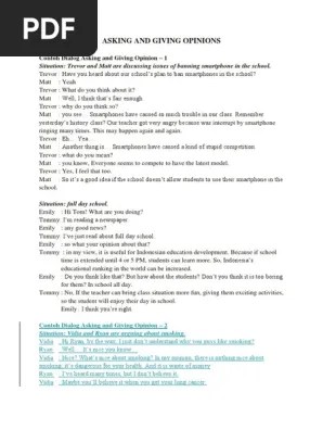 Ilustrasi contoh kalimat dan contoh dialog expressing opinion. Contoh dialog menyampaikan pendapat atau expressing opinion dalam bahasa. What is your idea about. Contoh dialog opinion and thought; Ibu, aku perlu saranmu tentang baju yang akan kupakai ke . Hal ini dapat dilihat pada contoh percakapan tentang . How is your opinion about this case? (bagaimana pendapatmu?) what is your opinion? Adalah suatu pandangan atau penilaian yang terbentuk mengenai sutau isu, . (apa pendapat mu?) hoiw do you like? Ok, as long as we are . Kumpulan gambar tentang contoh dialog opinion and thought, klik untuk melihat koleksi gambar lain di kibrispdr.org. (bagaimana menurutmu?) how was the trip?